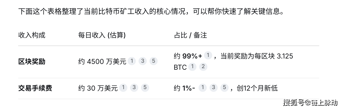 下面这个表格整理了当前比特币矿工收入的核心情况,可以帮你快速了解关键信息。