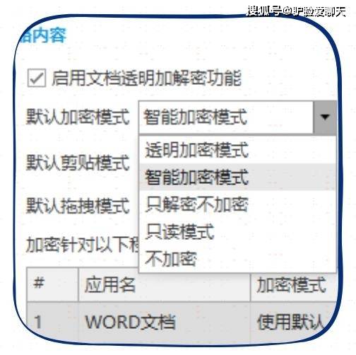 可以选择透明加密、智能加密、落地加密等不同的加密模式,并设置相应的加密强度。
